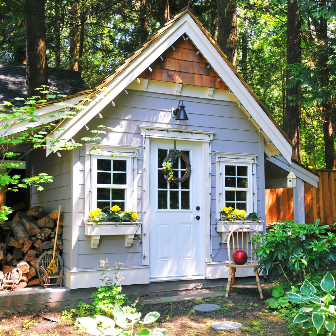 light blue shed