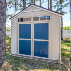 tan and blue shed 240