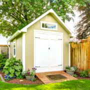 tan and white shed